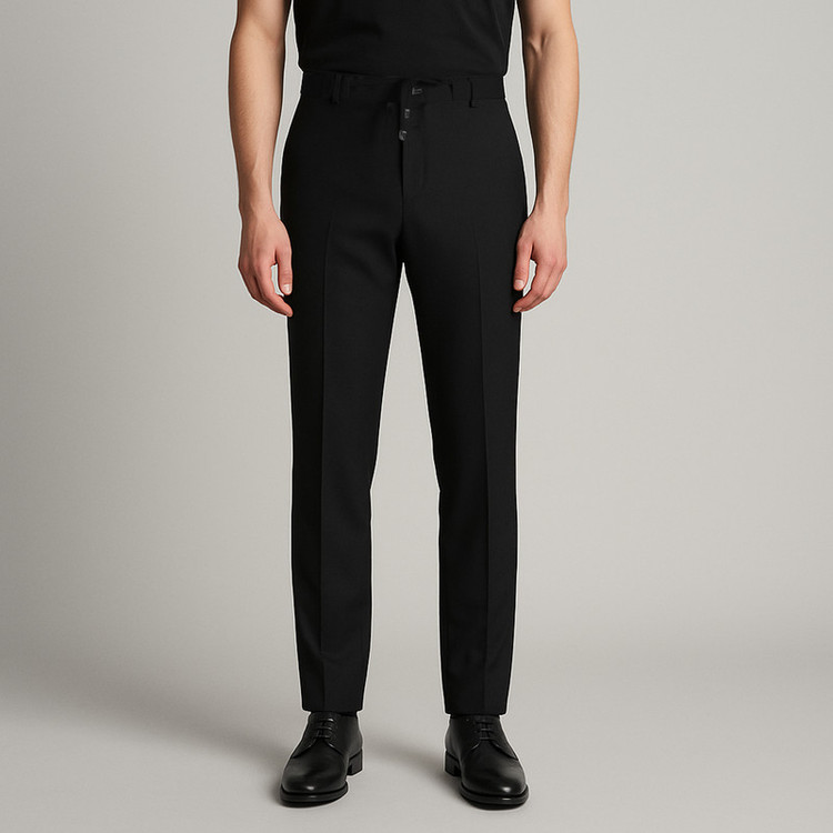 شلوار پارچه ای مردانه لینن استایل Custom-Fit پیش کار تک دکمه دارای کمربند جهت فیت کردن دور کمر الیاف خنک و سبک