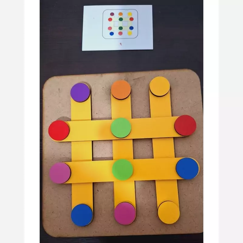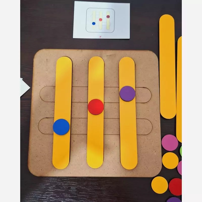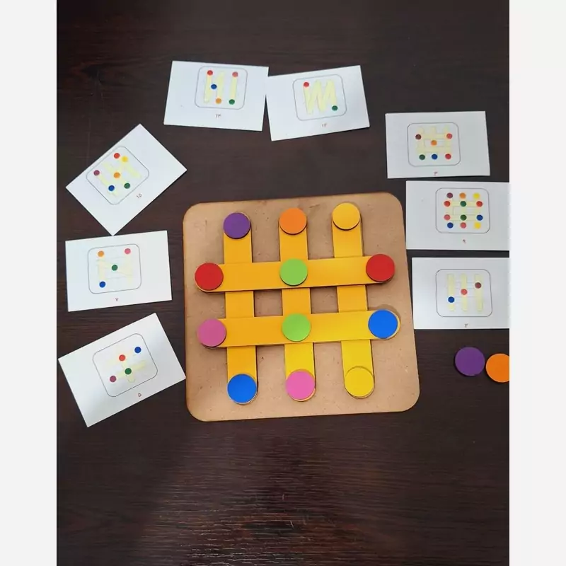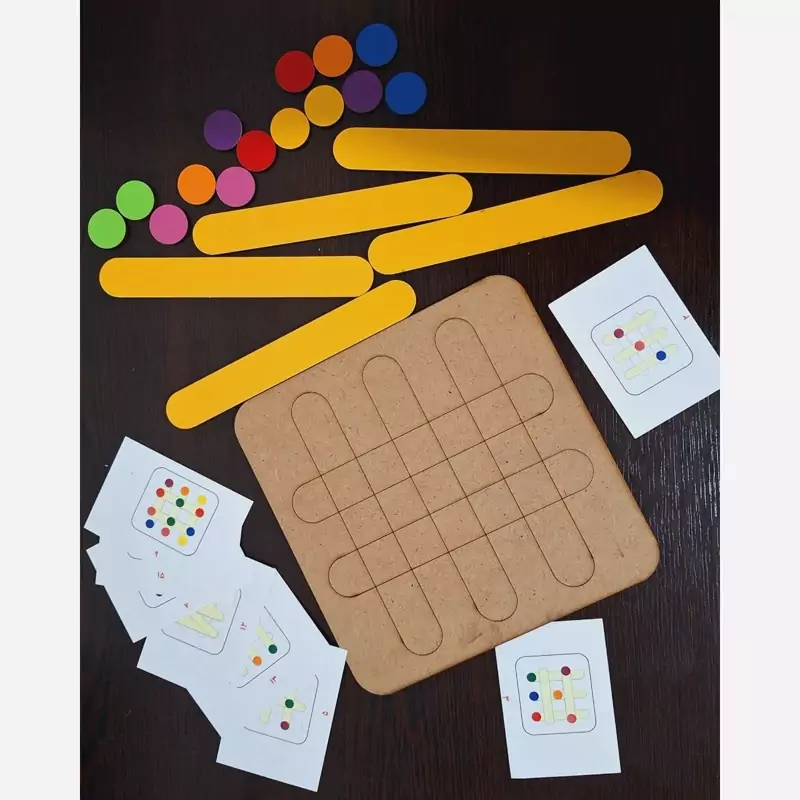 الگو ها را در اختیار کودک میگذارید و از آن ها میخواهید طبق الگو چوب بستنی ها را بر روی پالت بچینند.
