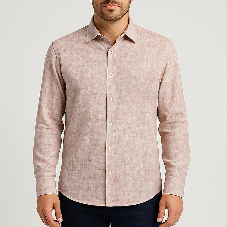 پیراهن مردانه آستین بلند-پارچه ترکیبی از الیاف پنبه و لینن-استایل Comfort-Fit-خنک و تنفس پذیر-آستین دو دکمه-ثبات رنگ در شستشو