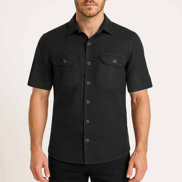 پیراهن مردانه آستین کوتاه پارچه تهیه شده از ۱۰۰٪ الیاف لینن استایل Comfort-Fit دارای دو جیب روی سینه خنک و تنفس پذیر ثبات رنگ در شستشو
