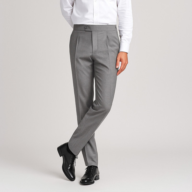 شلوار مردانه پارچه ای استایل Slim-Fit تک پیله دارای سگک استیل پیش کار تک دکمه دارای 4٪ الاستین جهت راحتی بیشتر