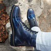 بوت مردانه اسپرت چرم طبیعی دست دوز مدل دماوند پلاس سرمه ای
