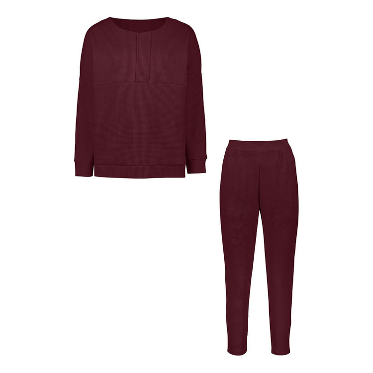 ست سویشرت و شلوار زنانه مون سا مدل 11233 رنگ زرشکی