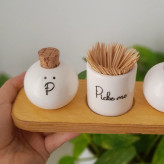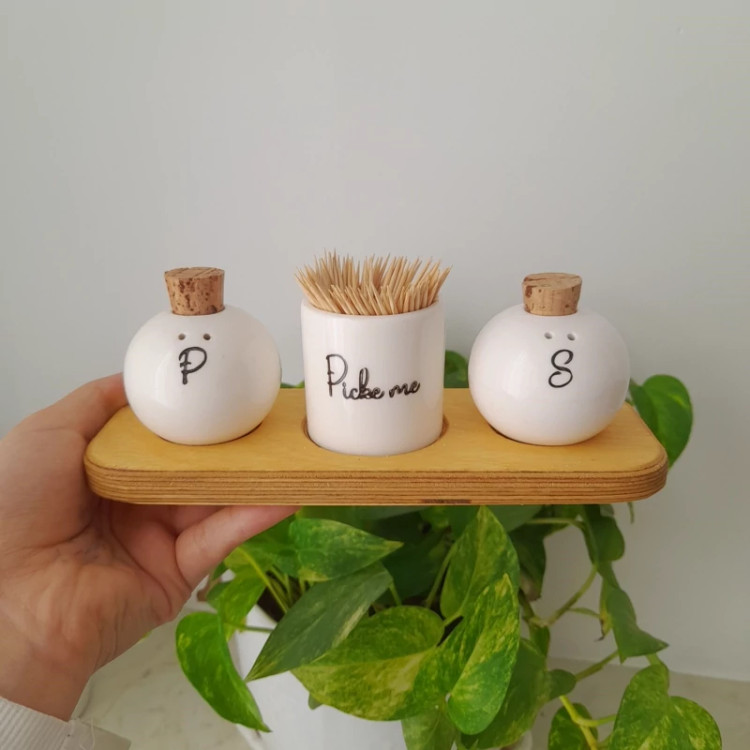 یه تخته داریم که سه تا جا داره یکی برای فلفل پاشه بامزه و خوشگل و گردالیمون یکی برای نمک پاش خوشگل و بامزمون یکی برای جای خلال دندون که همیشه لازمه اگه میخوای میزت آشپزخونهات و سفرهت زیبا و قشنگ و دلربا باشه به یکی از اینا احتیاج داری حالا خود دانی مناسب جهیزیه و خانمهای خوش سلیقه مناسب کادو و هدیه و استفاده روزمره هر کسی از اینا نداره اگر تو بخری خاص میشی