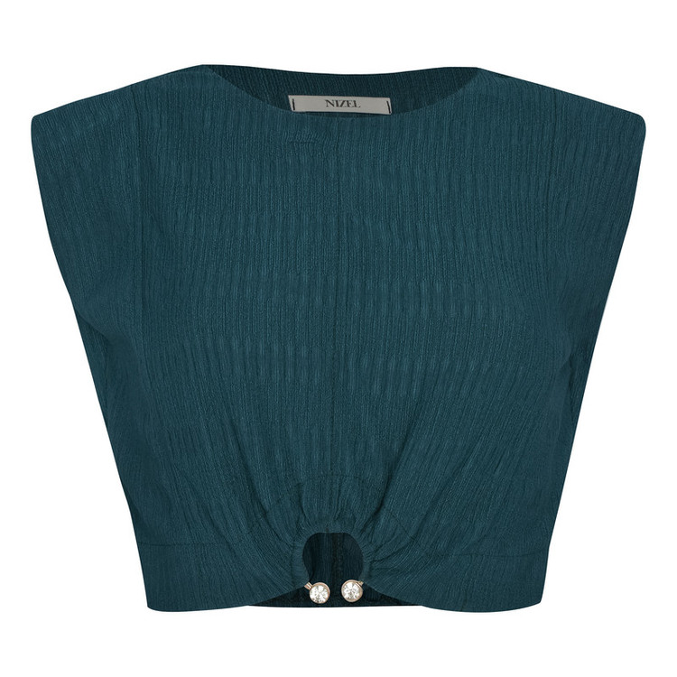 این کراپ تاپ دارای اپل روی سرشانه است.