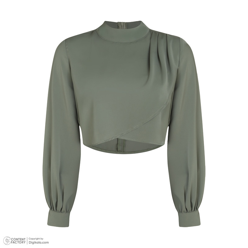 کراپ بلوز آستین بلند یقه ایستاده زنانه نیزل مدل 1175 رنگ سبز سدری
