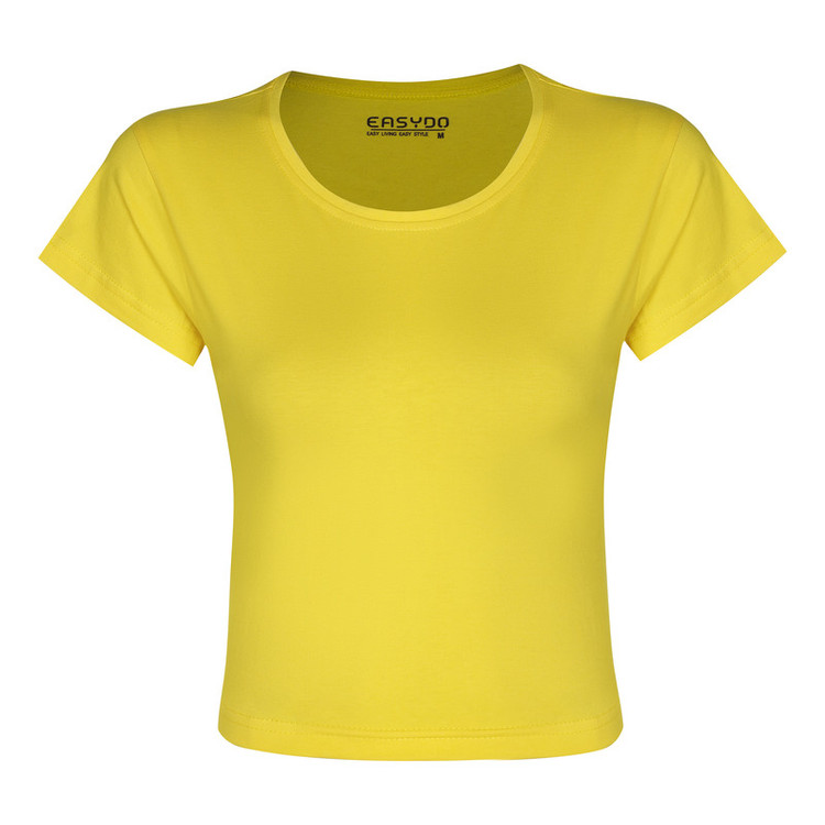 کراپ‌ تی‌شرت آستین کوتاه زنانه ایزی دو مدل 3843059879 رنگ زرد