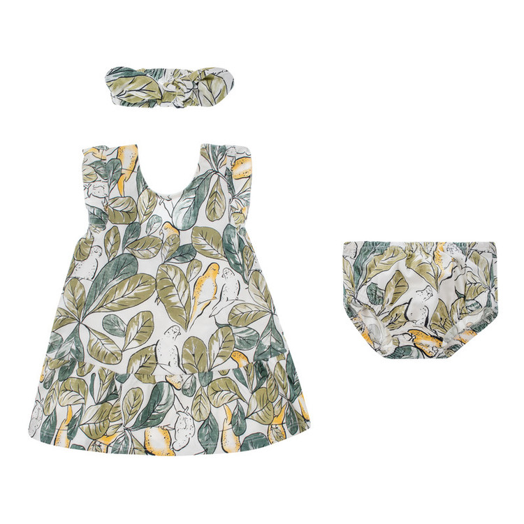 این ست شامل پیراهن، شورت و هدبند است.