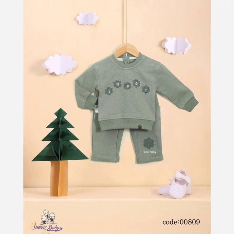ست بلوز شلوار دخترانه شنل دوزی 5 گل برند آینور بیبی