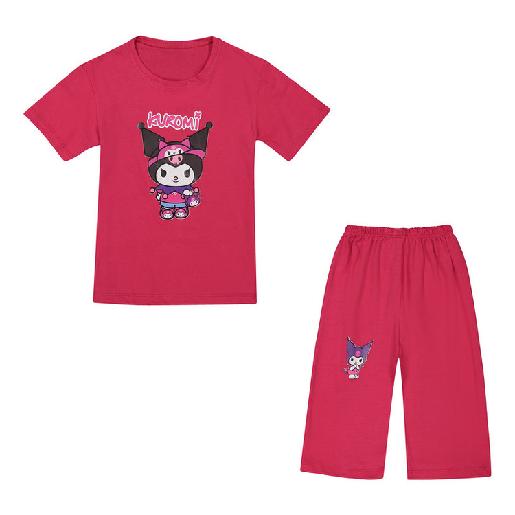 ست تی شرت آستین کوتاه و شلوارک دخترانه مدل کرونی رنگ صورتی