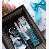 شما پروانه های آبی قشنگش رو ببین که چجوری دلبری میکنن🦋🥹این ست همون کادو خاصیه که دنبالشی💙پس دل دل نکن و همینالان سفارش بده👌🏼☺️مشخصات این ست دلبر زیبا💙