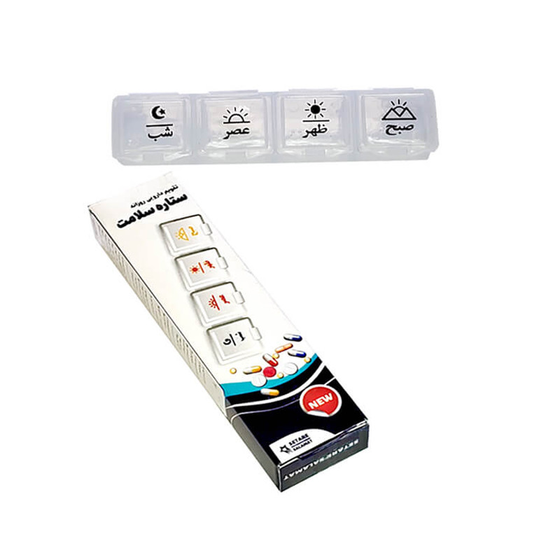 به خاطر سپردن مصرف روزانه داروها چالشی است که اغلب افراد با آن روبرو هستند. سالمندان، افرادی که دچار فراموشی و یا سایر مشکلات زوال عقل هستند و افرادی که تنها زندگی میکنند بیشتر در معرض خطر فراموشی یا اشتباه در مصرف دارو هستند. مصرف دارو در زمان مناسب و دقیق به روند بهبود بیمار کمک شایانی میکند. تقویم دارویی روزانه دارای 4 قسمت مجزا برای صبح، ظهر، عصر و شب میباشد. تقویم دارویی ستاره سلامت با محفظهای شفاف طراحی شده است. این محصول به گونهای طراحی و ساخته شده است که مقاومت بالایی در برابر ضربه از خود نشان دهد و طول عمر بالایی داشته باشد. در ساخت این محصول از مرغوبترین مواد اولیه استفاده شده است.