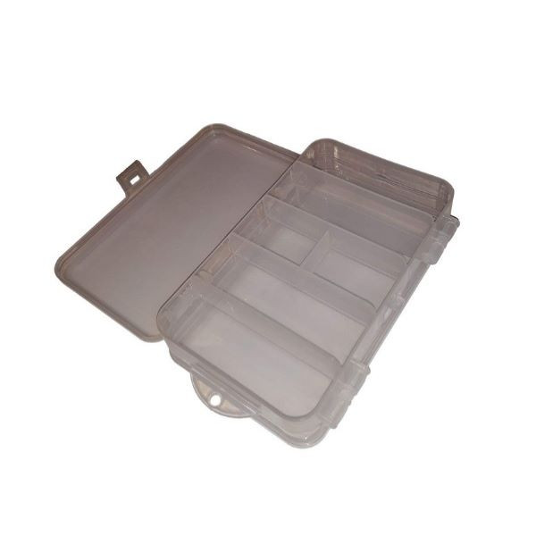 دارای دو قسمت مجزا در دو طرف کم حجم و جادار دارای شبکه بندی برای قرار دادن لوازم ماهیگیری این محصول شامل یک عدد جعبه قلاب و یک بسته پودر طعمه ماهیگیری می باشد.