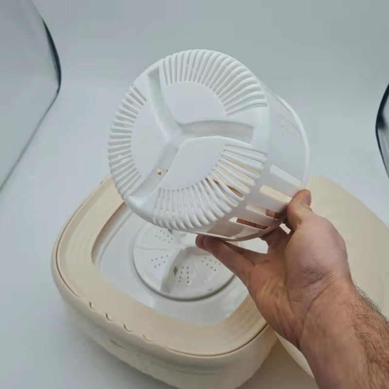 سایر توضیحات : دارای سبد چرخان خشک کن و تاشو قابل راه اندازی با برق 12 ولت