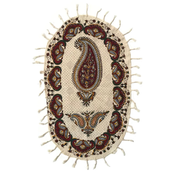 این محصول زیبا را میتوانید به عنوان رومیزی میزهای کوچک وعسلی استفاده نمایید. طرح محصول طرح بته جقه نام دارد که از طرح های معروف و سنتی قلمکار است.