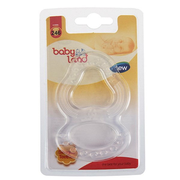 محصولی که میبینیم دندانگیر برند «بیبیلند» مدل (246) است. دندان در آوردن نوزاد میتواند برای او آزاردهنده و همراه با بیقراری باشد و از طرفی باعث گریههای بیامان او شود. این زمان بهترین زمان برای استفاده از دندانگیر است. این مدل از دندانگیر برند «بیبیلند» از لحاظ ظاهری بیرنگ شفاف بوده و طوری طراحی شده که به واسطه دو فضای خالی در قسمت میانی دندانگیر، به راحتی در دست قرار میگیرد. محصول فوق فاقد مایع خنککننده لثه بوده و به دلیل وجود برجستگیهایی که بر روی بدنه آن طراحی شده، کمک زیادی به تسکین درد نوزاد میکند. این محصول بیرنگ بوده و برای نوزاد دختر و پسر مناسب است. این محصول از کیفیت خوبی برخوردار بوده و فاقد مواد مضر شیمیایی است.