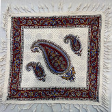 رومیزی های قلمکاری به روش سنتی و دستساز تولید میشوند و به همین خاطر ممکن است تفاوت هایی جزئی در سایز یا طرح وجود داشته باشد.