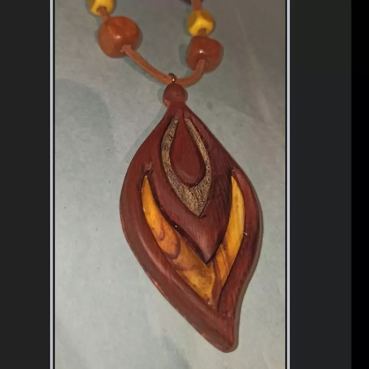 گردن بند چوبی معرق و منبت کاری شده با طرح خاص