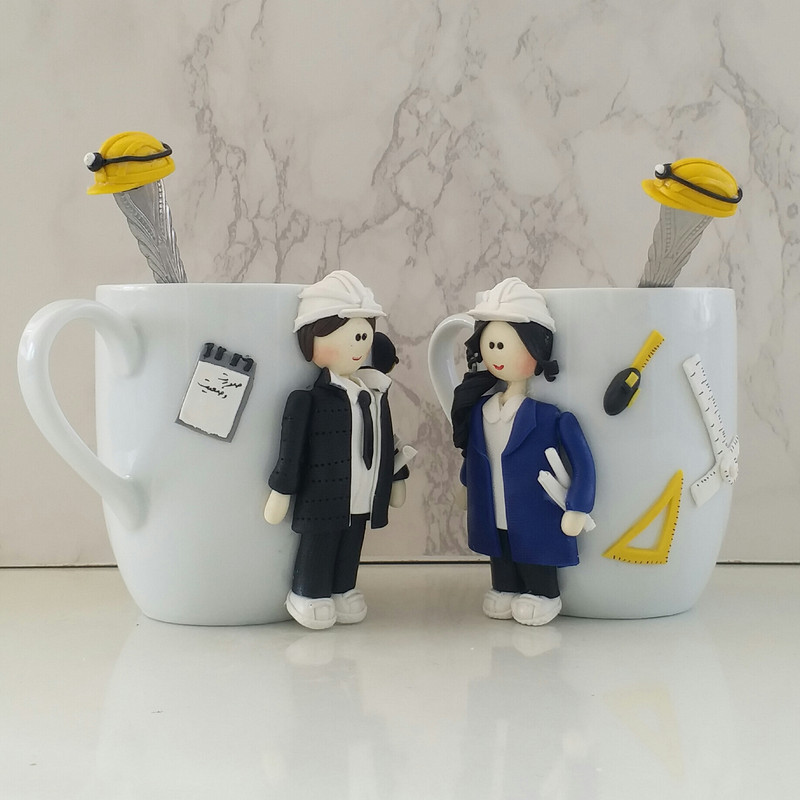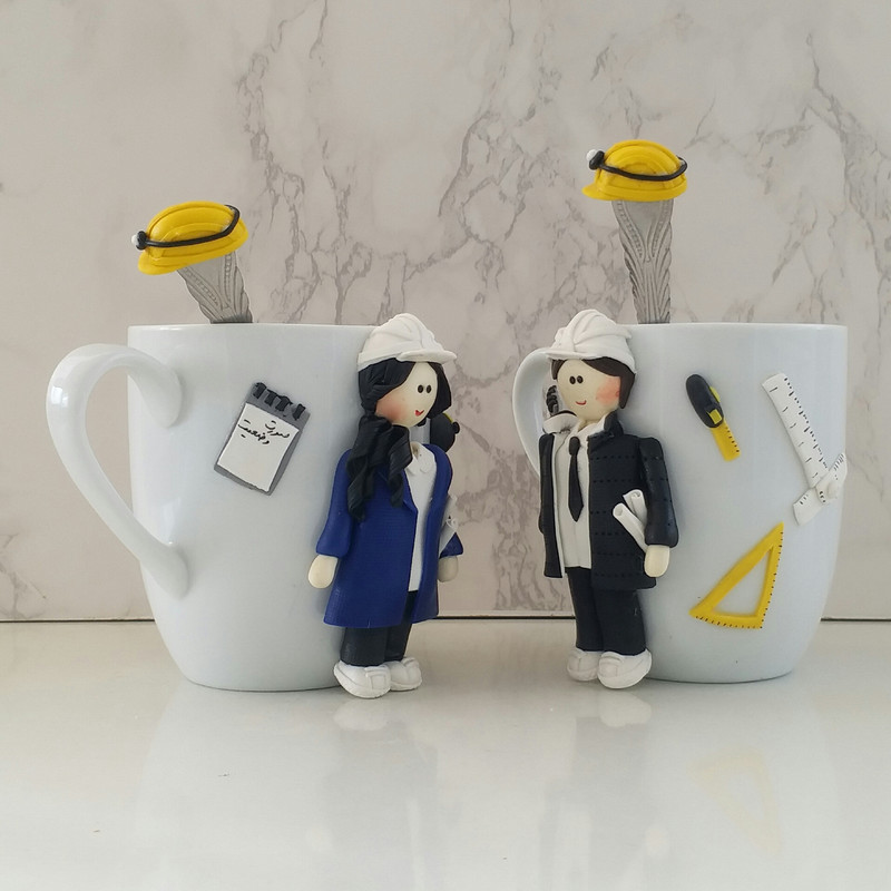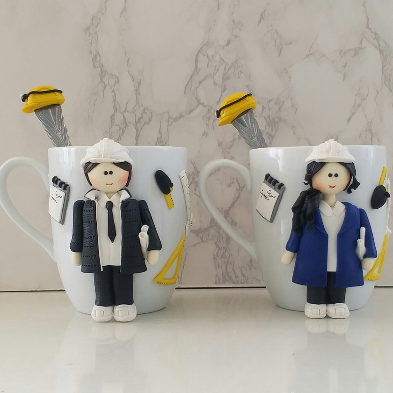 ماگ سرامیکی مدل روز مهندس عمران کد L589 به همراه قاشق مجموعه 2 عددی