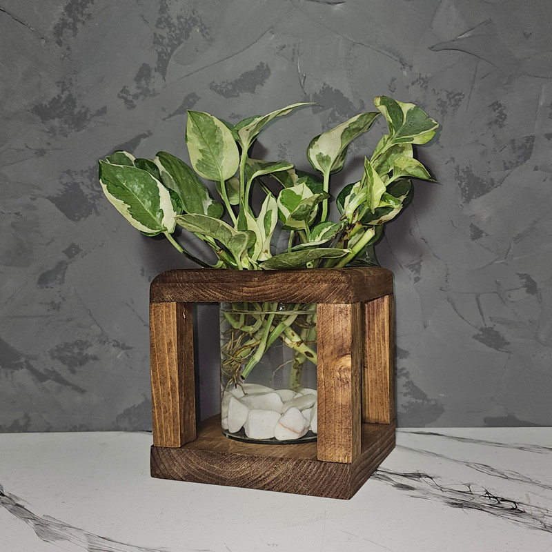 گلدان ها همراه با شیشه سایز خود عرضه می شوند که میتوانید گیاهان را بصورت هیدروپونیک ( کشت داخل آب ) پرورش بدهید و علاوه بر زیبایی برگ ها و گلهایشان از زیبایی ریشه و روند رشد ریشه ها لذت ببرید .