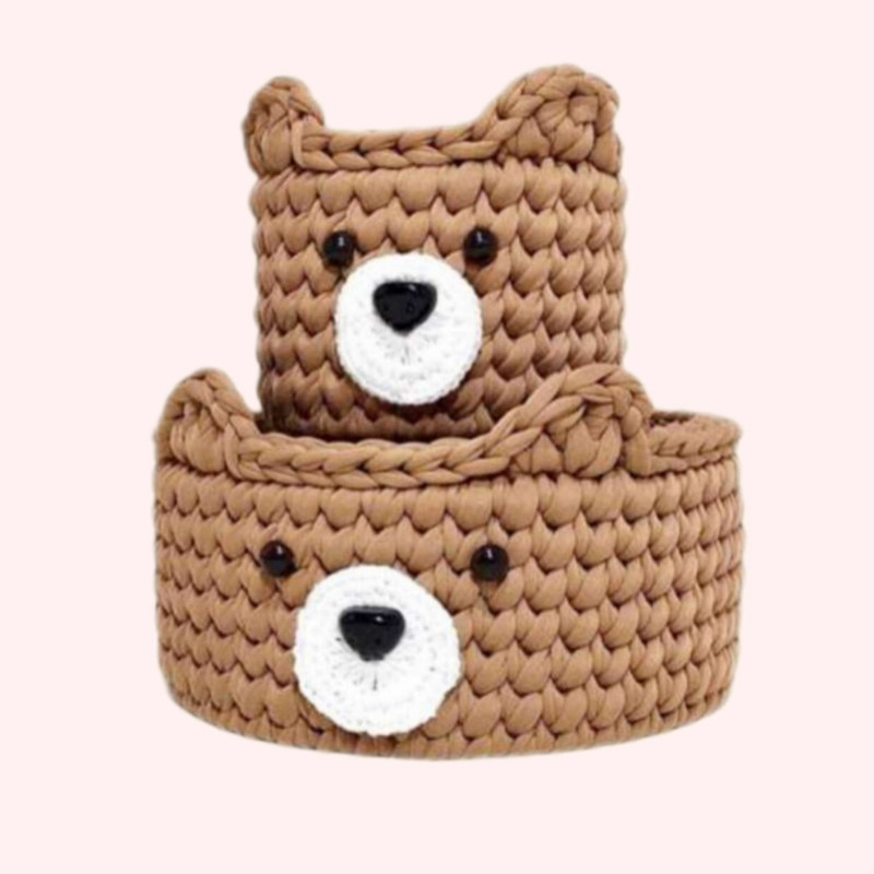 سبد قلاب بافی تریکو مدل خرس کد 01 مجموعه 2 عددی