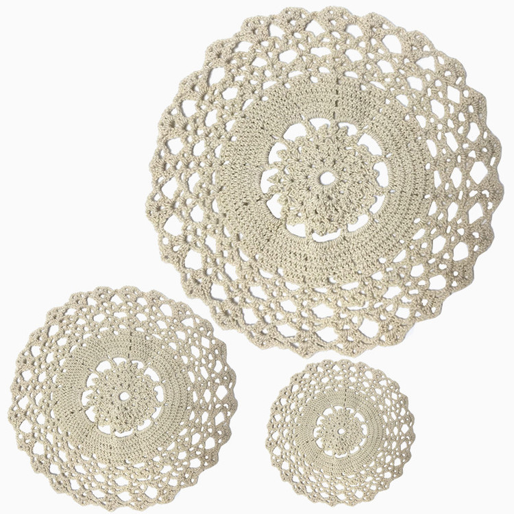 مجموعه ۳ عددی شامل: سایز بزرگ: ۵۸x۰.۵x۵۸ سانتی متر سایز متوسط: ۳۸x۰.۵x۳۸ سانتی متر سایز کوچک: ۳۰x۰.۵x۳۰ سانتی متر - کاموابافی