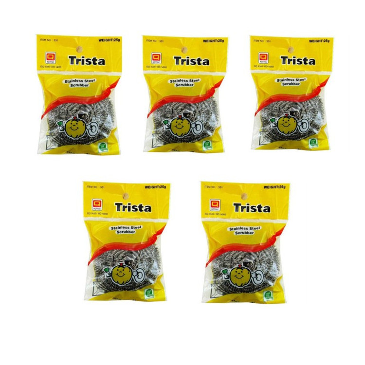 بسته 5 عددی سیم ظرفشویی تریستار Tristar هر عدد 30 گرم و بسته 5 عددی 150 گرم است سیم ظرفشویی تریستار بسیار شناخته شده و پرفروش است و از مفتول درجه یک تولید شده .