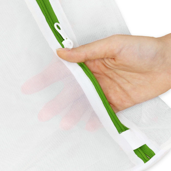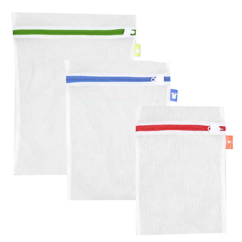 کیسه شست و شوی لباس مایهوم بسته 3 عددی در سه سایز 36x49 و 29x39 و 23x34 می باشد که کنار هر سایز یک آیکون که نشان دهنده سایز هر نوع لباس است قرار دارد. کاربرد اصلی کیسه شستشو محافظت از لباس یا پارچههایی است که بافت حساسی دارند و ممکن است شستشوی مستقیم آنها در ماشین لباسشویی باعث پارگی یا آسیب به لباس شود. اغلب این کیسه ها جنس توری دارند، کیسه شستشوی لباس کالایی ارزان و مفید برای پروسه شستشوی لباس است. به چند دلیل داشتن یکی از آنها در هر خانهای ضروری است: برای اینکه بعضی لباسهای چسبی، دارای قلاب یا فنر به باقی لباسهایتان آسیب نزند بهتر است آنها را درون کیسههای توری شستشوی لباس قرار داده و سپس داخل ماشین لباسشویی بیاندازید.
