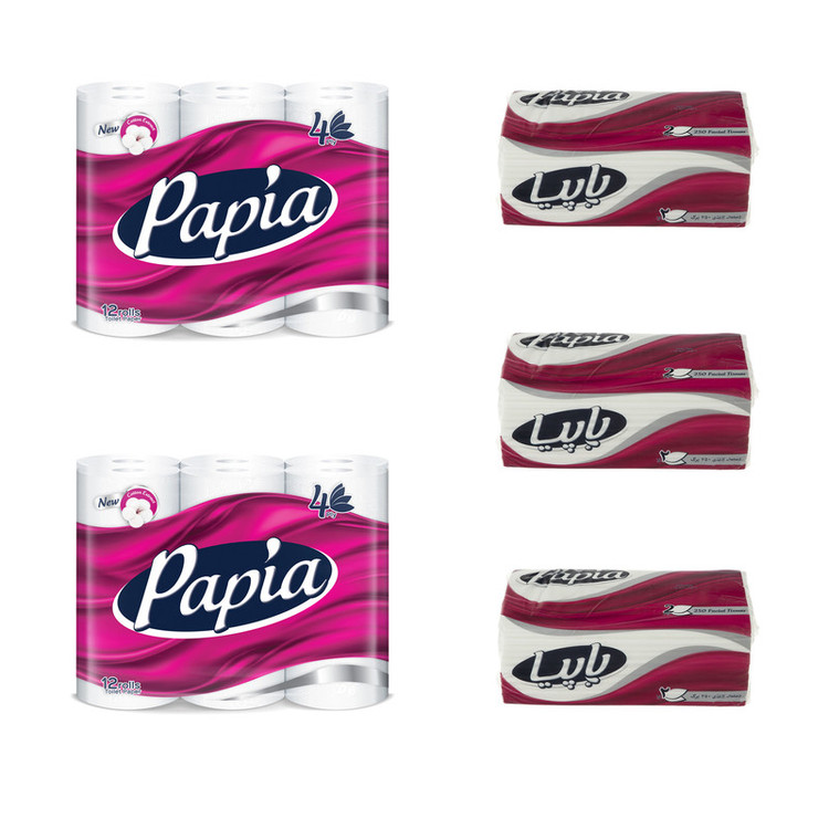 2 بسته 12 عددی ( 24 عدد ) دستمال توالت 4 لایه همراه با 3 بسته دستمال کاغذی 2 لایه 250 برگ