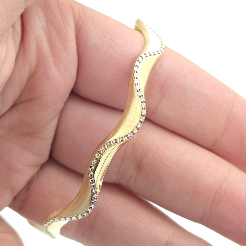 النگو طلا کم اجرت 18 عیار زنانه طلا و شمش برلیان مدل استخوانی کد 140 سایز ۴