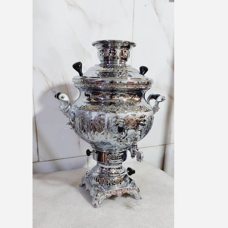 سماور 8لیتری مهسان قلمزنی برند رادین مجهز ب شیرگاز استاندارد