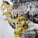 سماور 8لیتری دسته پایه طلایی تمام برنجی ورق ضخیم