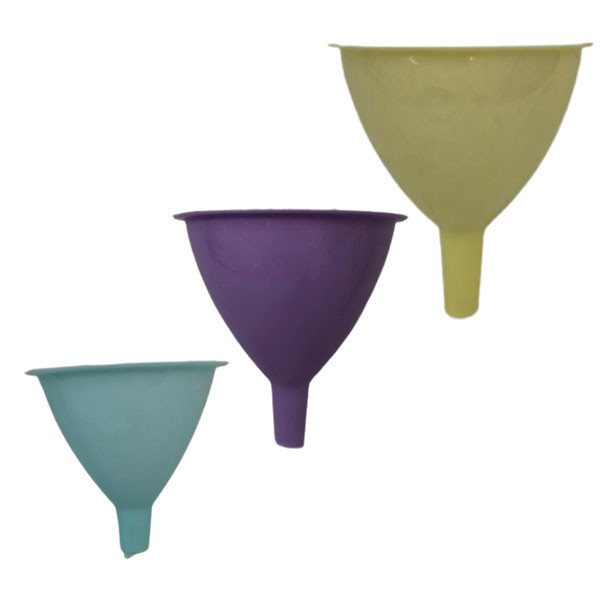 شامل سه عدد قیف با ابعاد زیر: سایز بزرگ: قطر 9 و ارتفاع 11 سانتیمتر سایز متوسط: قطر 7.5 و ارتفاع 9 سانتیمتر سایز کوچک: قطر 6 و ارتفاع 7 سانتیمتر