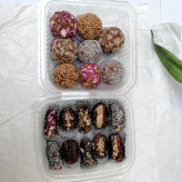 خرمای مغزدار تک نفره و خرمای توپکی مجلسی بسته ترکیبی وزن 400گرمی
