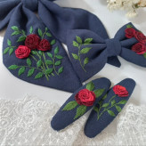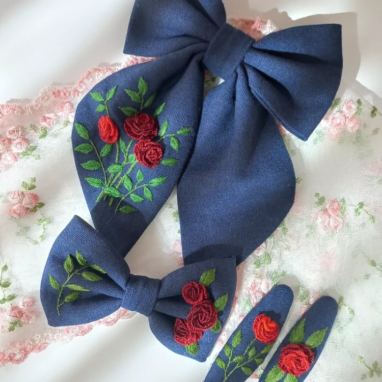 پاپیون دنباله دار گلدوزی شده طرح بوته رز، دست دوز