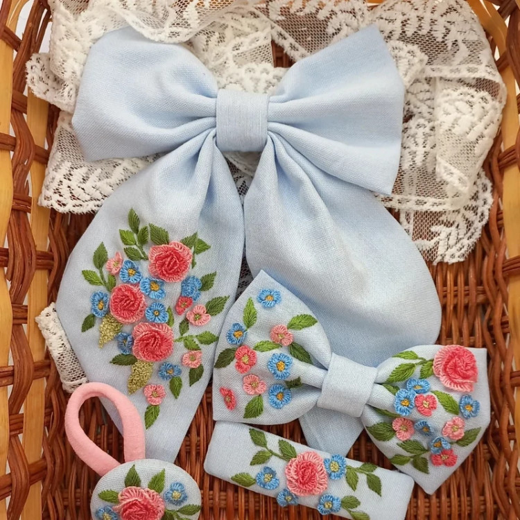 پاپیون دنباله دار گلدوزی شده طرح بهار، دست دوز