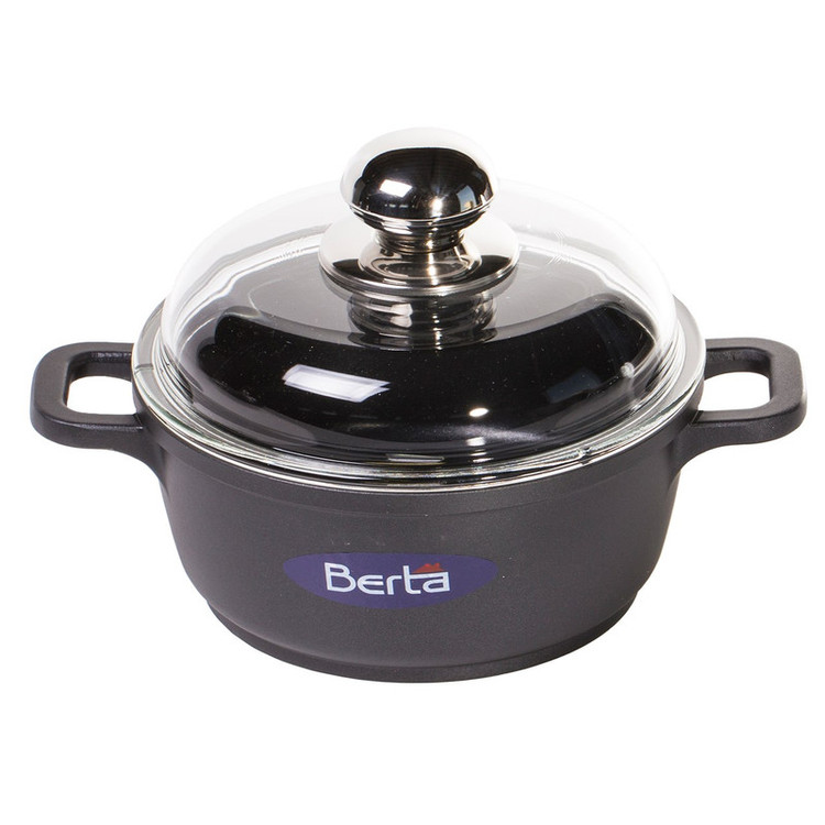 - قابلمه با قطر 16 سانتیمتر و ارتفاع 8 سانتی متر - درب پیرکس - پوشش خارجی ظرف نچسب مقاوم به حرارت -دایکست(چدن)