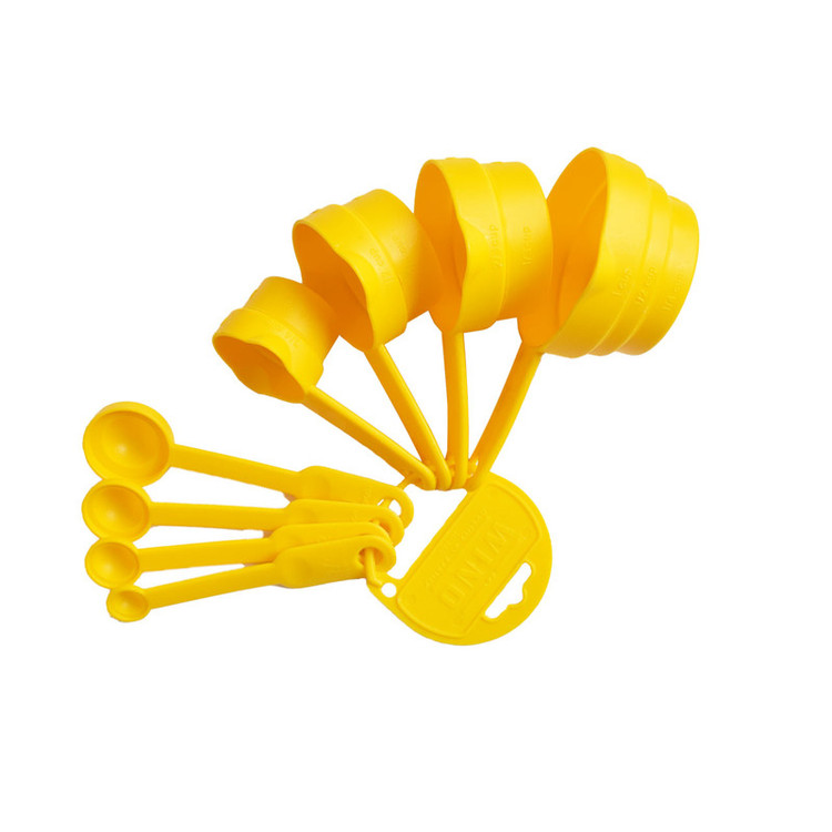 - ست پیمانه اندازه گیری 6 عددی در سایزهای مختلف با قابلیت قفل شدن در یکدیگر - قابلیت اشغال کردن حداقل فضا به دلیل قرار گرفتن تمام پیمانهها درون یکدیگر - درج گنجایش پیمانه روی همگی پیمانه ها به میلی لیتر، قاشق چایخوری و غذاخوری