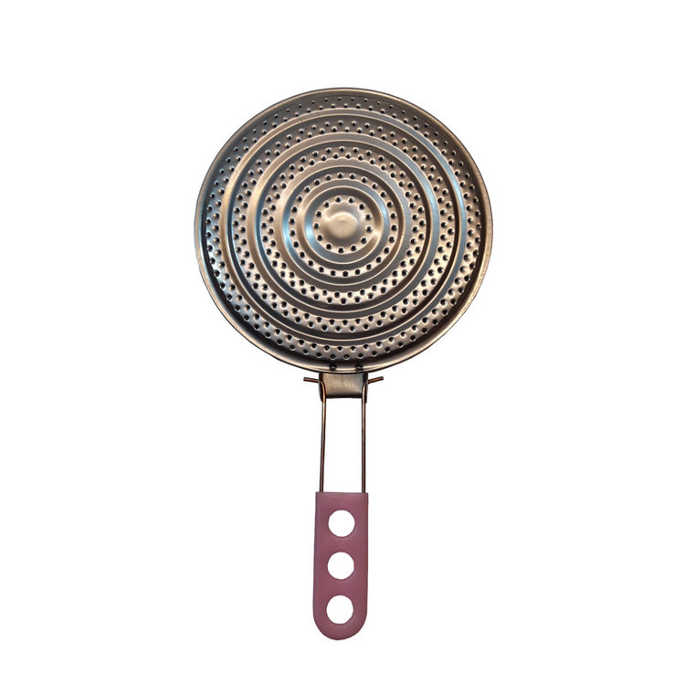 این شعله پخش کن ساخته شده از 2 ورقه و دولایه است. دارای منافظ متعدد برای پخش یکنواخت و مناسب حرارت به قابلمه یا تابه. وزن این شعله پخش کن فلزی 160 گرم میباشد. دارای دسته تاشو.