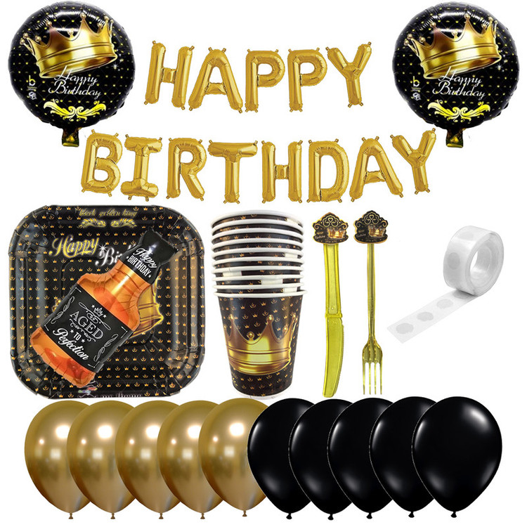 10 عدد پیش دستی 10 عدد لیوان 10 عدد چنگال 10 عدد کارد 5 عدد بادکنک ساده 5 عدد بادکنک کروم بادکنک 13 تکه هپی برث دی به همراه 3 عدد بادکنک فویلی و 1 حلقه چسب بادکنک