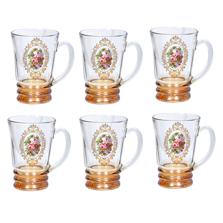 نام تجاری: KAVEH از جنس بلور دو رنگ تزئین شده با طرح بوتهی گل رز دارای پایه گرد نقش برجسته عسلی رنگ قابل استفاده در تزئین ویترین و بوفه ظروف دکوری مناسب استفاده در منزل، هتلها و …