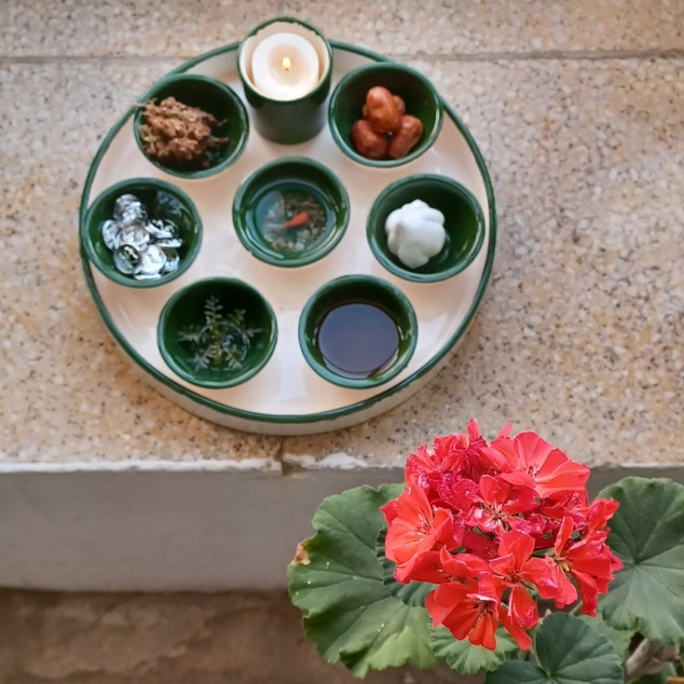ست هفت سین مینیمال دست ساز سرامیکی طرح سبز و سفید ( پس کرایه)