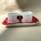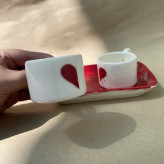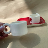 ست فنجان عاشقانه و زیر فنجانی دست ساز سرامیکی طرح قلب(پس کرایه)