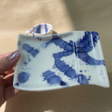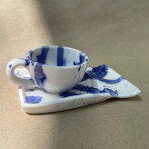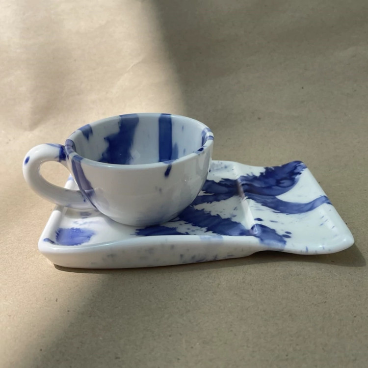 ست فنجان مینیمال دسته دار و زیر فنجانی دست ساز سرامیکی طرح رگ های آبی(پس کرایه)
