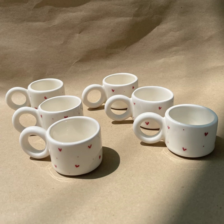 ست قهوه خوری دسته گرد دست ساز سرامیکی طرح قلب(پس کرایه)