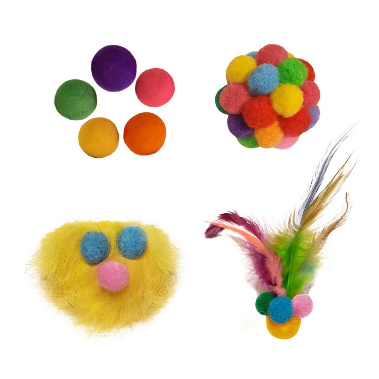 حاوی یک عدد توپ پردار،یک عدد توپ رنگارنگ ,یک عدد توپ پشمالو و پنج عدد توپک نمدی از الیاف طبیعی