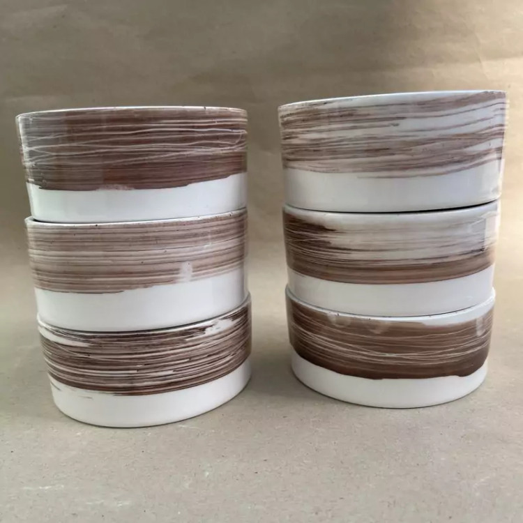 کاسه گرد دستساز سرامیکی طرح پتینه (6تایی)(پس کرایه)
