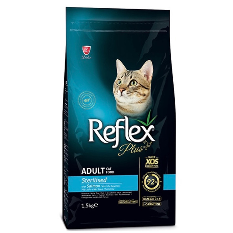 ویژگی ها Reflex Plus Adult Cat Sterilised: تقویت کننده سیستم ایمنی کنترل وزن گربه خوش طعم حاوی پروتئین و فسفر های سبک بهبود سلامت روده گربه غنی شده با ویتامین و انتی اکسیدان طبیعی