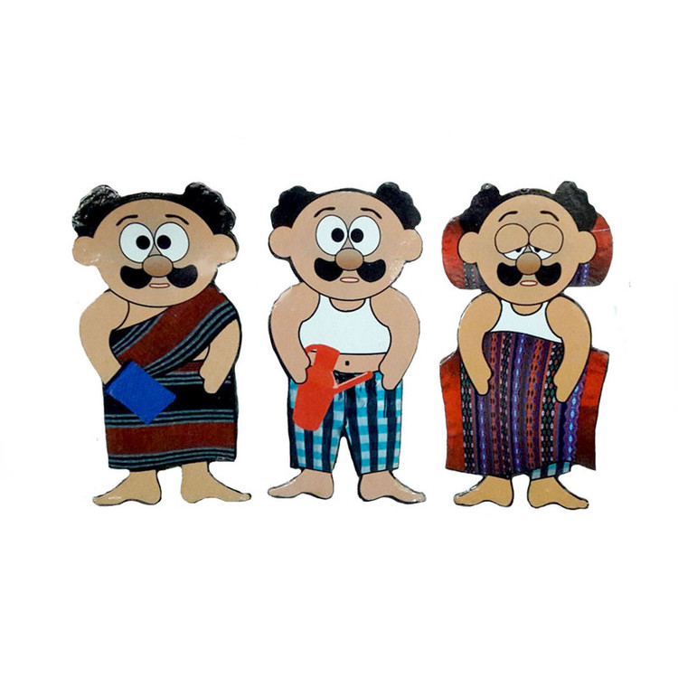 دارای 3 عروسک چوبی در طرحهای مختلف دارای یک تکه چسب دو طرفه در پشت هر عروسک برای نصب روی درب