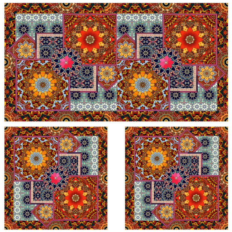 پارچه شانل درجه یک با رنگ ثابت قابل شستشو با مواد شوینده به دفعات دارای لایی در پشت کار برای ایستایی بهتر شامل سه تکه 90x45یک عدد 40x40 دو عدد